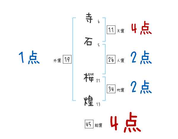 寺石桜煌さんの画数の鑑定結果