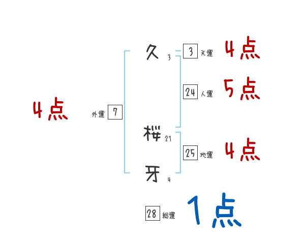 久桜牙さんの画数の鑑定結果