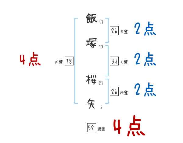 飯塚桜矢さんの画数の鑑定結果