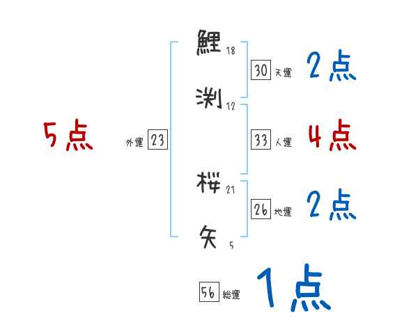 鯉渕桜矢さんの画数の鑑定結果