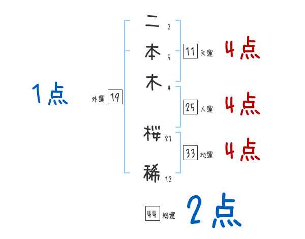 二本木桜稀さんの画数の鑑定結果