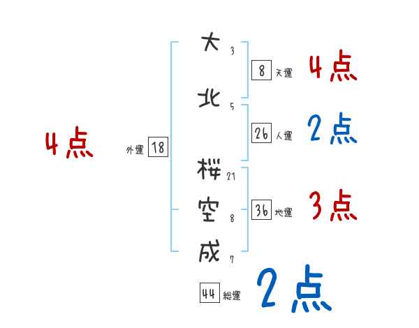大北桜空成さんの画数の鑑定結果