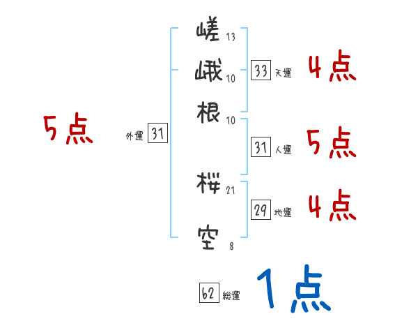 嵯峨根桜空さんの画数の鑑定結果