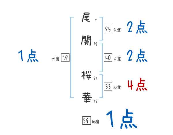 尾関桜華さんの画数の鑑定結果