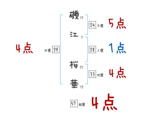 磯江桜華さんの画数の鑑定結果