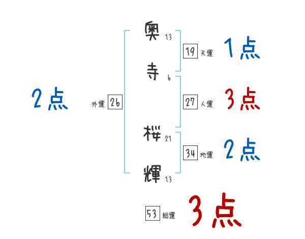 奥寺桜輝さんの画数の鑑定結果