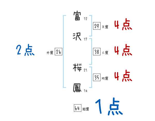 地運![]() | 富沢桜鳳さんの地運は35画の4つ星!温厚な性格で感受性が高い。穏和な性格で人望が厚い。 個性を表す基礎的な運勢です。性格形成や対人関係、行動力など家庭環境に影響されます。主に誕生してから20歳くらいまでの若年期の運勢を表します。 |