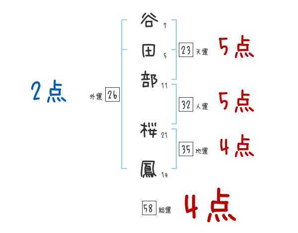 谷田部桜鳳さんの画数の鑑定結果