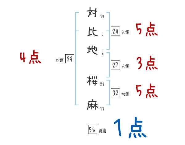 対比地桜麻さんの画数の鑑定結果