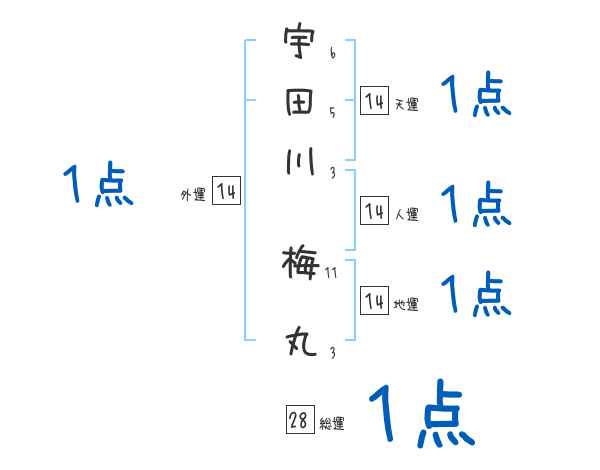 宇田川梅丸さんの画数の鑑定結果