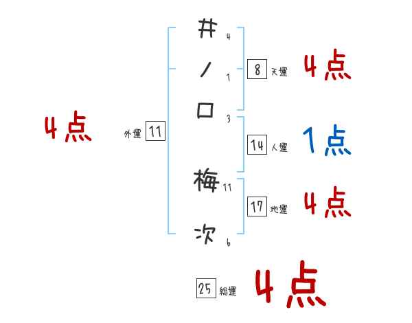 井ノ口梅次さんの画数の鑑定結果