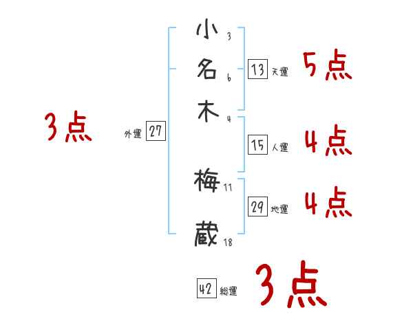 小名木梅蔵さんの画数の鑑定結果