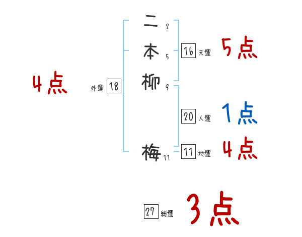 二本柳梅さんの画数の鑑定結果