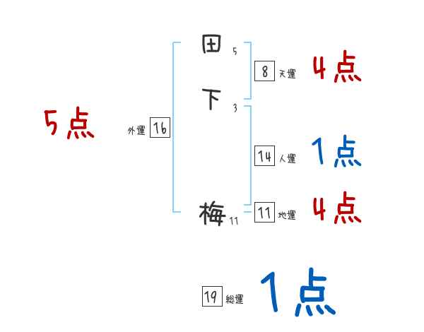 田下梅さんの画数の鑑定結果