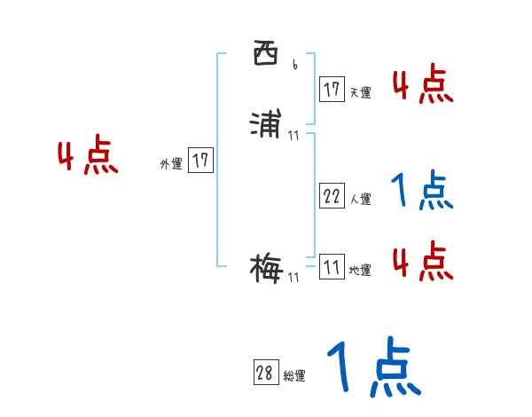西浦梅さんの画数の鑑定結果