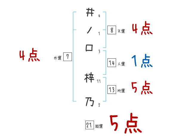 外運![]() | 井ノ口梓乃さんの外運は7画の4つ星!強い意志や信念を持ち独立心が強い。自立する。 生活面を象徴する運勢です。外部から受ける影響力を表し、結婚運、家庭運や職場、環境への順応性を表します。 |
