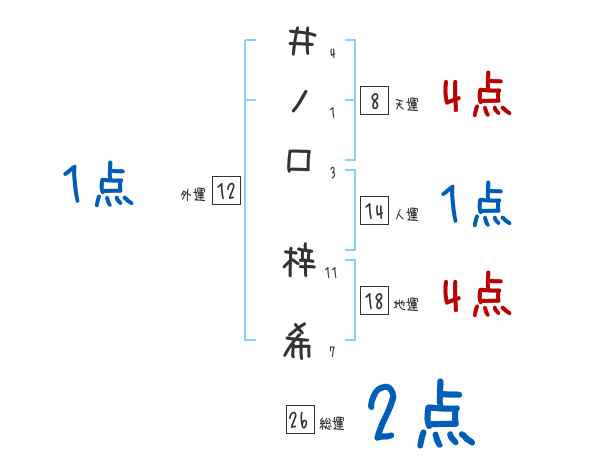 総運![]() | 井ノ口梓希さんの総運は26画の2つ星!波瀾万丈かも。信頼できる人を大事にしましょう。 あなたの人生を表す1番重要な運勢です。生涯を通じて影響する総合運となり、主に50歳以降の晩年期に影響を及ぼします。 |