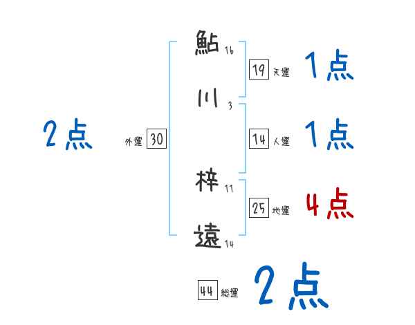 鮎川梓遠さんの画数の鑑定結果