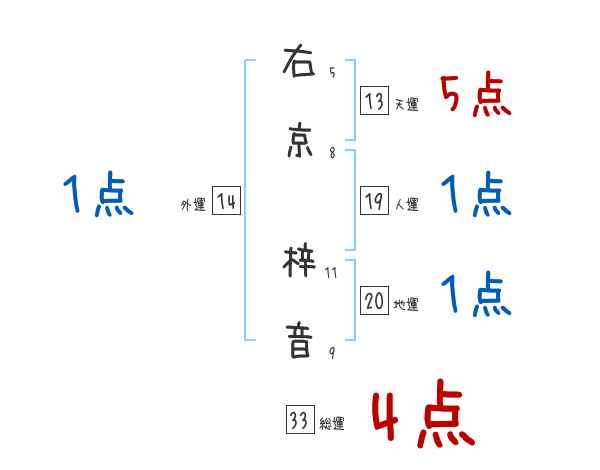 右京梓音さんの画数の鑑定結果