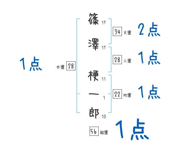 篠澤梗一郎さんの画数の鑑定結果