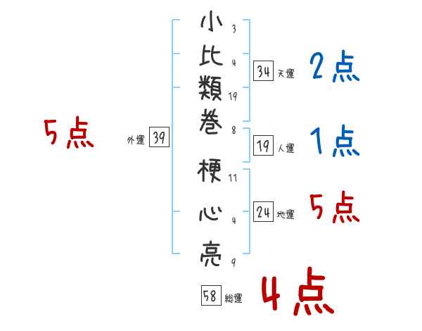 小比類巻梗心亮さんの画数の鑑定結果