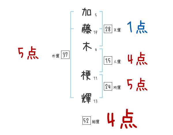加藤木梗輝さんの画数の鑑定結果
