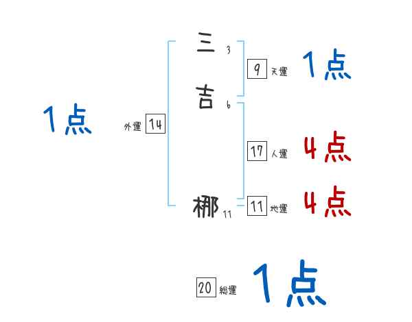 三吉梛さんの画数の鑑定結果