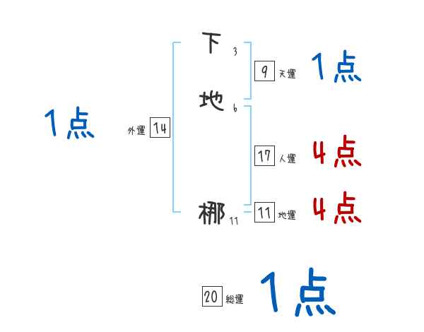 下地梛さんの画数の鑑定結果
