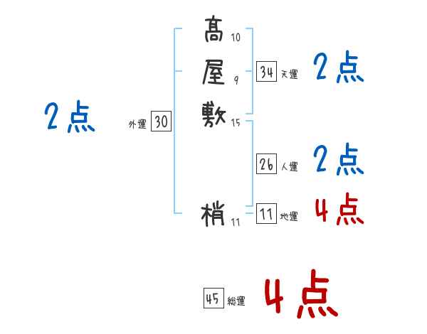 髙屋敷梢さんの画数の鑑定結果