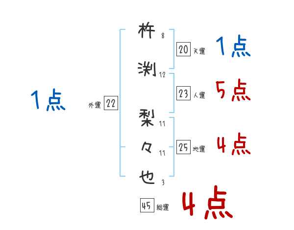 杵渕梨々也さんの画数の鑑定結果