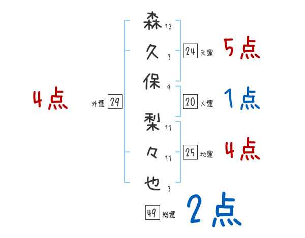 森久保梨々也さんの画数の鑑定結果