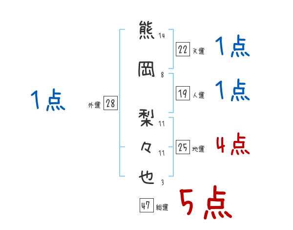熊岡梨々也さんの画数の鑑定結果