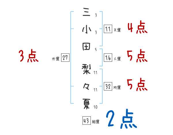 三小田梨々夏さんの画数の鑑定結果
