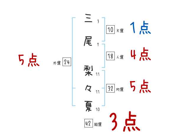 三尾梨々夏さんの画数の鑑定結果