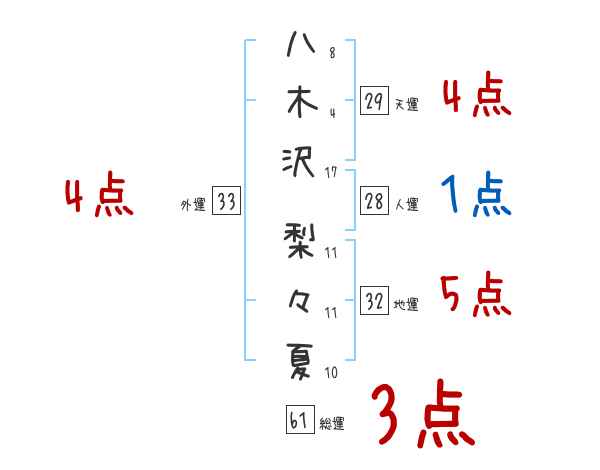 八木沢梨々夏さんの画数の鑑定結果