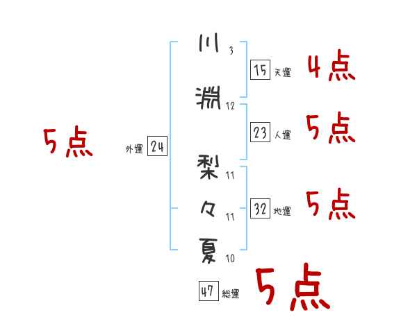 川淵梨々夏さんの画数の鑑定結果