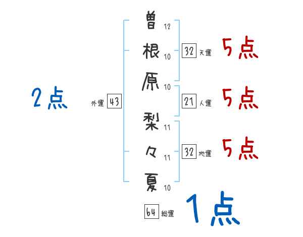 曽根原梨々夏さんの画数の鑑定結果