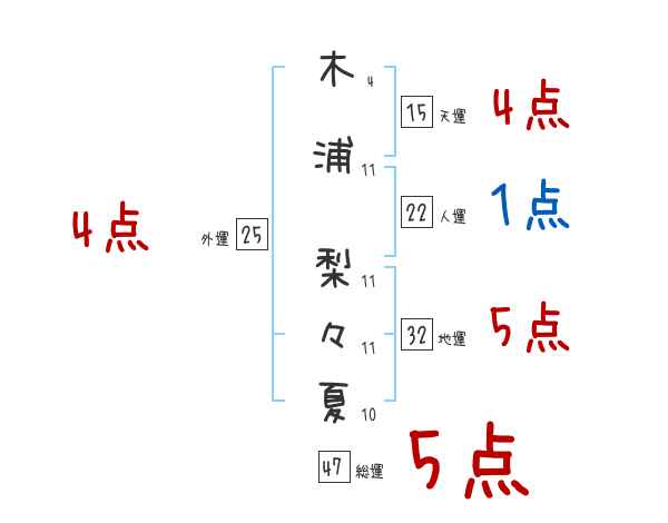 木浦梨々夏さんの画数の鑑定結果