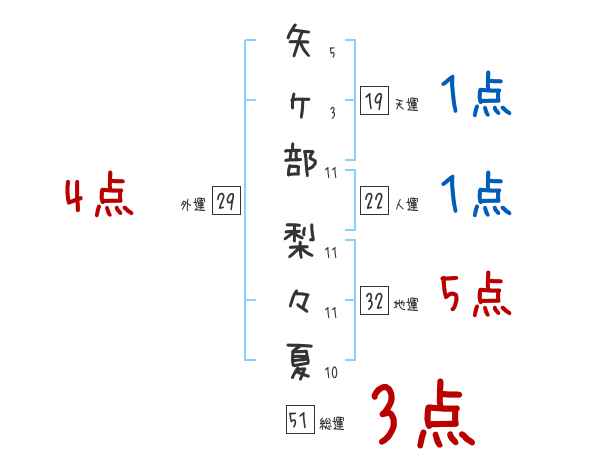 矢ヶ部梨々夏さんの画数の鑑定結果