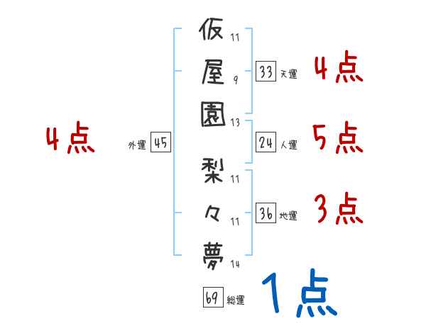 仮屋園梨々夢さんの画数の鑑定結果