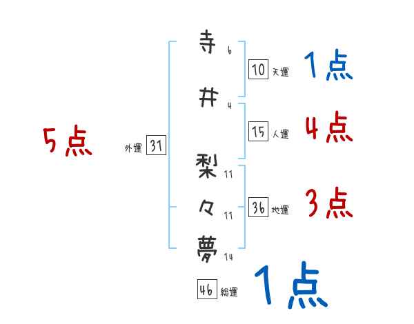 寺井梨々夢さんの画数の鑑定結果