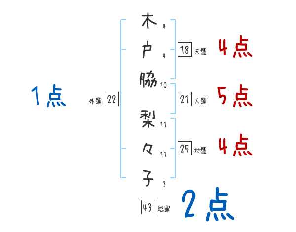 天運![]() | 木戸脇梨々子さんの天運は18画の4つ星!情熱的で剛気。忍耐力があり信頼される。 家系が持つ宿命的な運勢を表します。祖先から受け継いだ苗字ですので自分の力が及びません。家柄を象徴します。 |