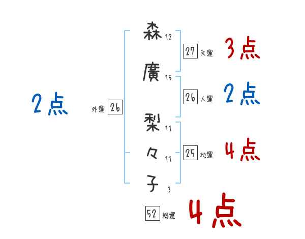 天運![]() | 森廣梨々子さんの天運は27画の3つ星!頭脳明晰だが強情で摩擦が多い傾向。孤立に注意。 家系が持つ宿命的な運勢を表します。祖先から受け継いだ苗字ですので自分の力が及びません。家柄を象徴します。 |