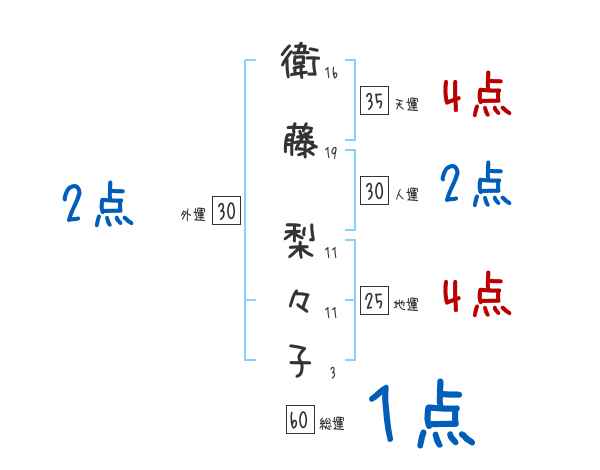 衛藤梨々子さんの画数の鑑定結果
