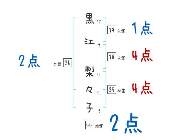 黒江梨々子さんの画数の鑑定結果
