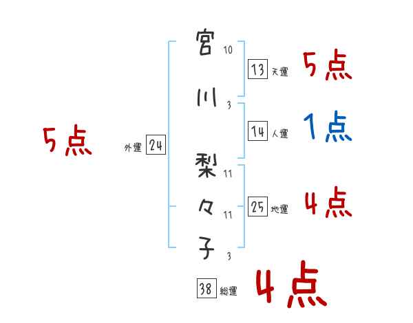 宮川梨々子さんの画数の鑑定結果