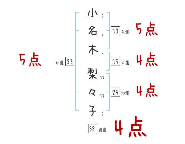 小名木梨々子さんの画数の鑑定結果