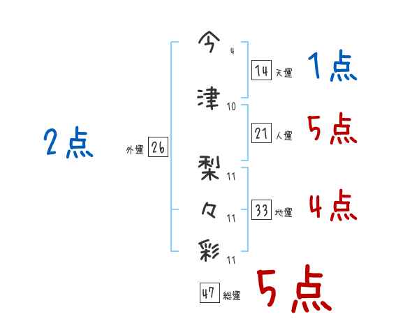 今津梨々彩さんの画数の鑑定結果