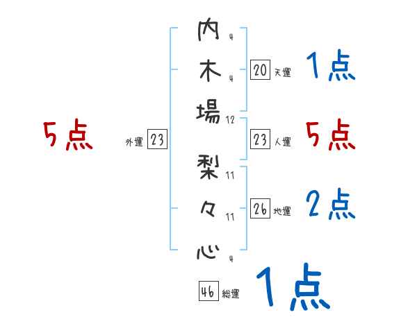 内木場梨々心さんの画数の鑑定結果