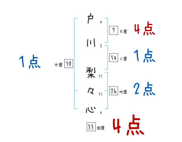 戸川梨々心さんの画数の鑑定結果